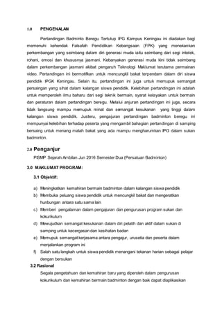 KERTAS KERJA PERTANDINGAN BADMINTON TERTUTUP SEKOLAH KEBANGSAAN BALIK PULAU TEMPAT. KERTAS KERJA KONSEP PERTANDINGAN KAWAD KAKI ANTARA UNIT BERUNIFORM. 16 dan 20 oktober 2022 anjuran.